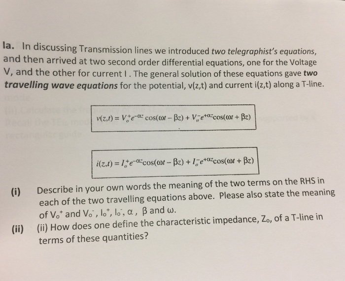 Solved 1 For A Tem Supporting Lossless Transmission Line