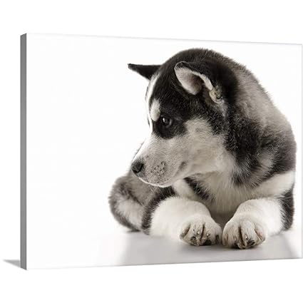 Cute Pomsky Puppy Dog Lying Down Seen From The Side Looking At The Camera Isolated On A White Background Art Print Poster