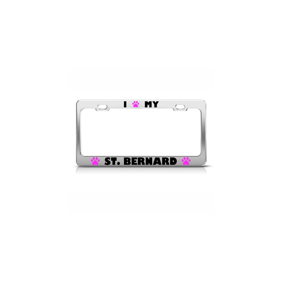 St Bernard Paw Love Dog License Plate Frame Stainless Metal