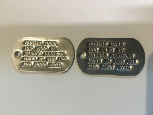 The mil spec matte dog tag can be customized with any of these 4 fonts. Custom us military dog tag by go tags 650 go tags is the most popular seller for all military dog tags and with good reasonwith 8 colors available and a range of customization options for text alignment these tags are some of the best on the market. The tag is primarily used for the identification of dead and wounded along with providing essential basic medical information for the treatment of the latter such as blood type and history of inoculations.