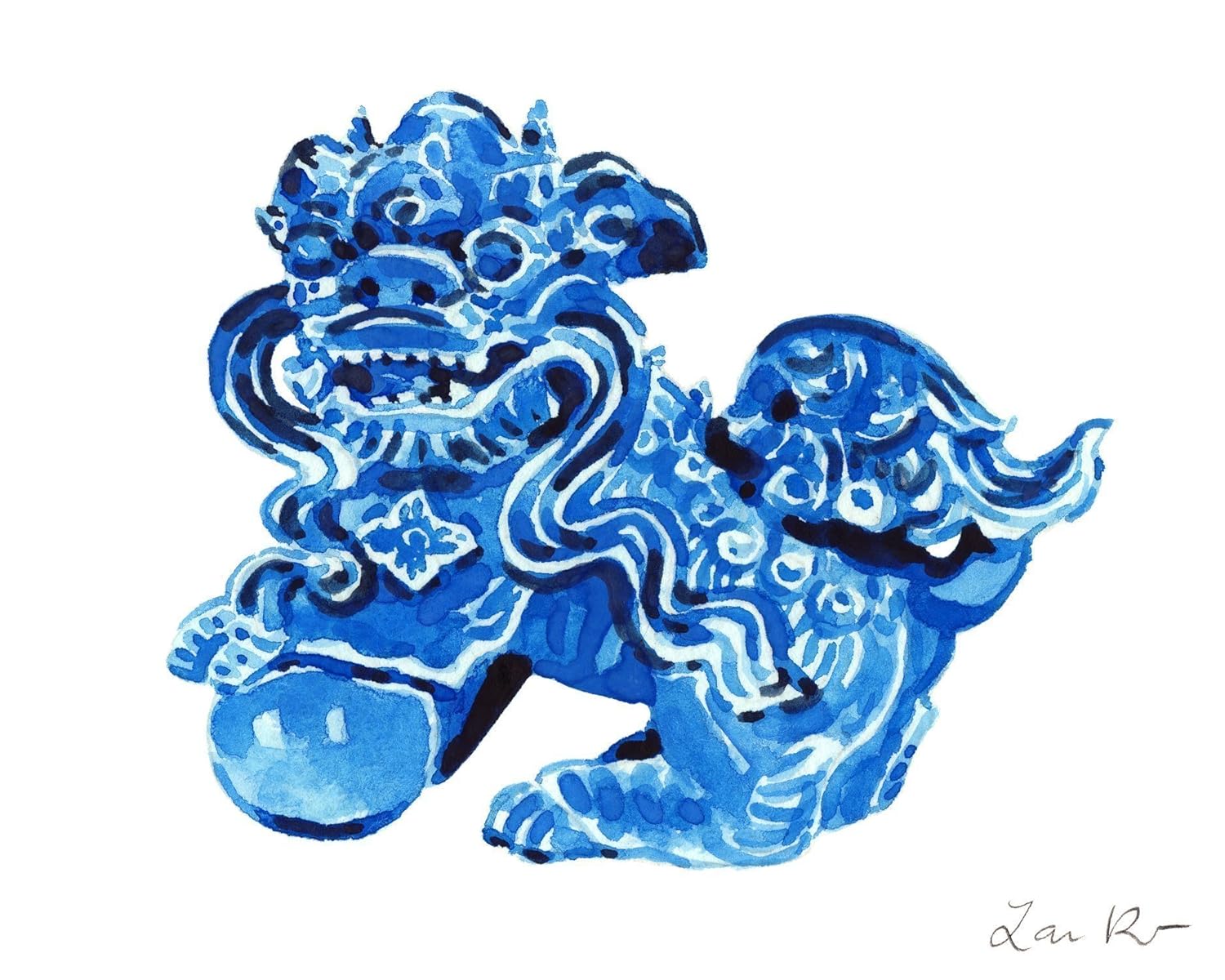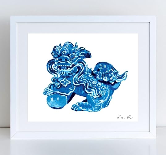 Amazon Com Chinese Foo Dog Art Blue Foo Dogs Print Vintage