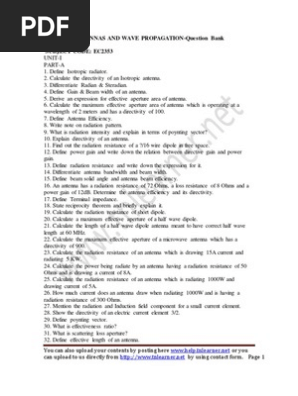 Antaneas And Wave Propogation Question Bank 1 Antenna