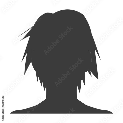 Silhouette Head Boy Anime Avatar Image Vector Illustration