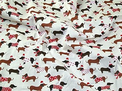 1 2m Ivory Cream Christmas Dogs Printed Polycotton Free Uk Post Dress Fabric Dogs Animal Print Multicoloured Dress Material Emerald Red X Mas