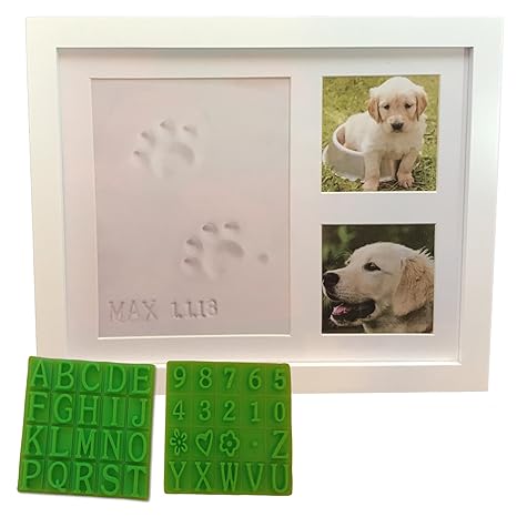 Ultimate Dog Or Cat Pet Pawprint Keepsake Kit Picture Frame Premium Wooden Photo Frame Clay Mold For Paw Print Free Bonus Stencil Makes A