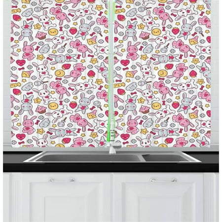 Anime Curtains 2 Panels Set Japanese Cartoon Pattern For Kids Nursery With Happy Bunnies Cupcakes Hearts Flowers Window Drapes For Living Room