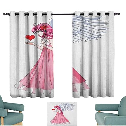 Anime Curtains 2 Panels Set Fairytale Character Angel In A Pink Dress Holding A Heart Romantic Valentines Day Window Drapes For Living Room Bedroom